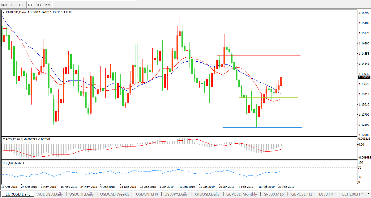 交易策略:在1.1315之上,看涨,目标价位为 1.1405 ,然后为1 .1450。