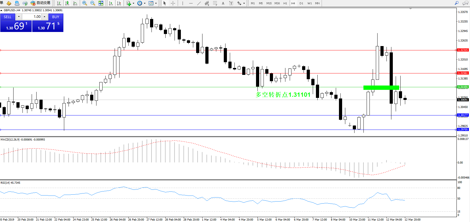 备选策略:1.31101上方看涨,目标1.31561、1.32315