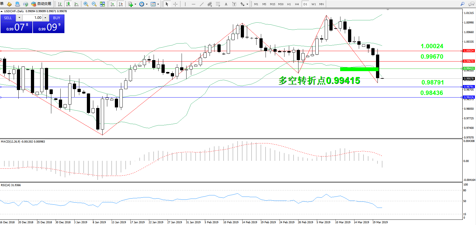 美元兑瑞郎刚刚触及0.9900关口,美联储的温和程度超出市场预期,对美元造成了影响。美联储2019年不加息的决定尤其鸽派。但美联储仍表示将继续支持经济增长,这降低了未来几个月降息的可能性。止于结束缩表的时间,9月份仍是预期的早期阶段。