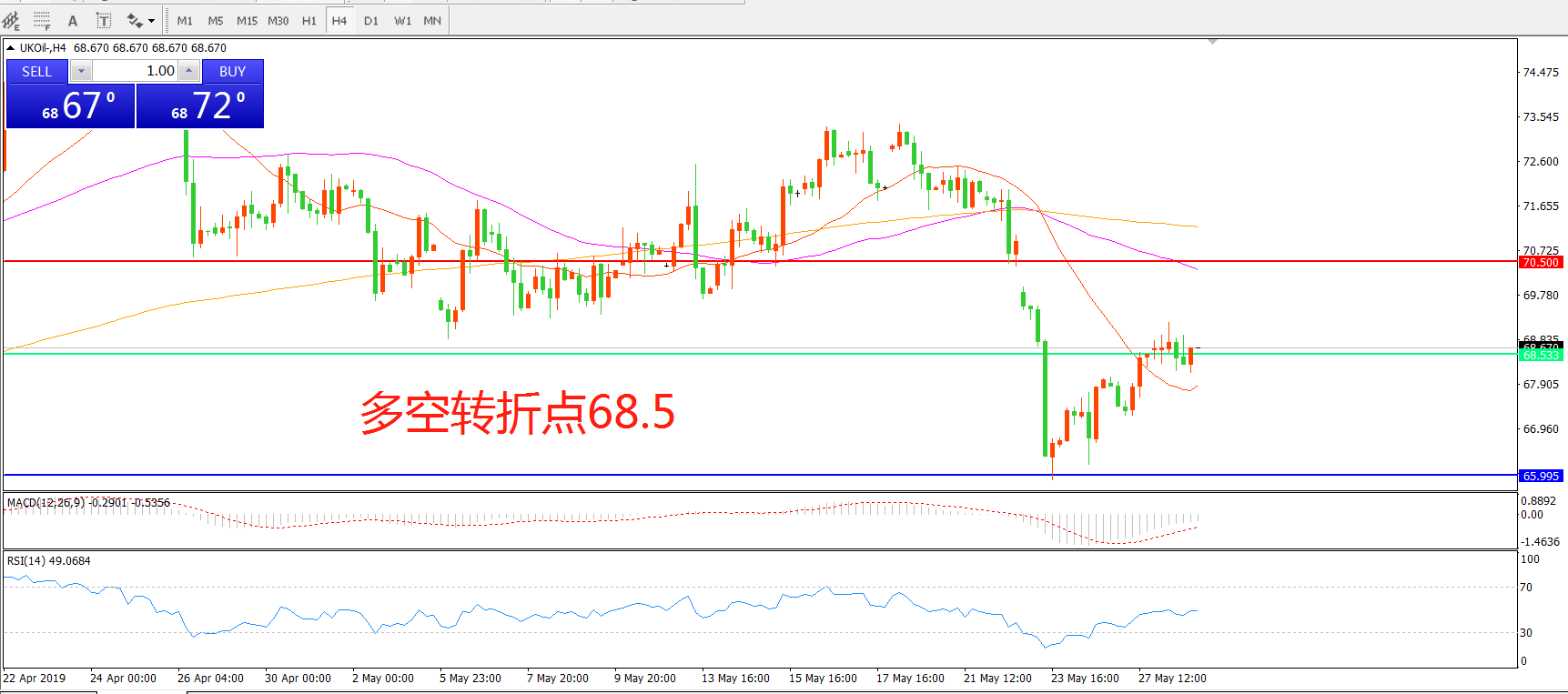 多空转折点:68.50