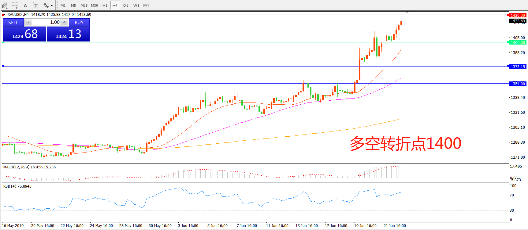 交易策略:在1400.00之上看涨,目标1430.00   1490.00