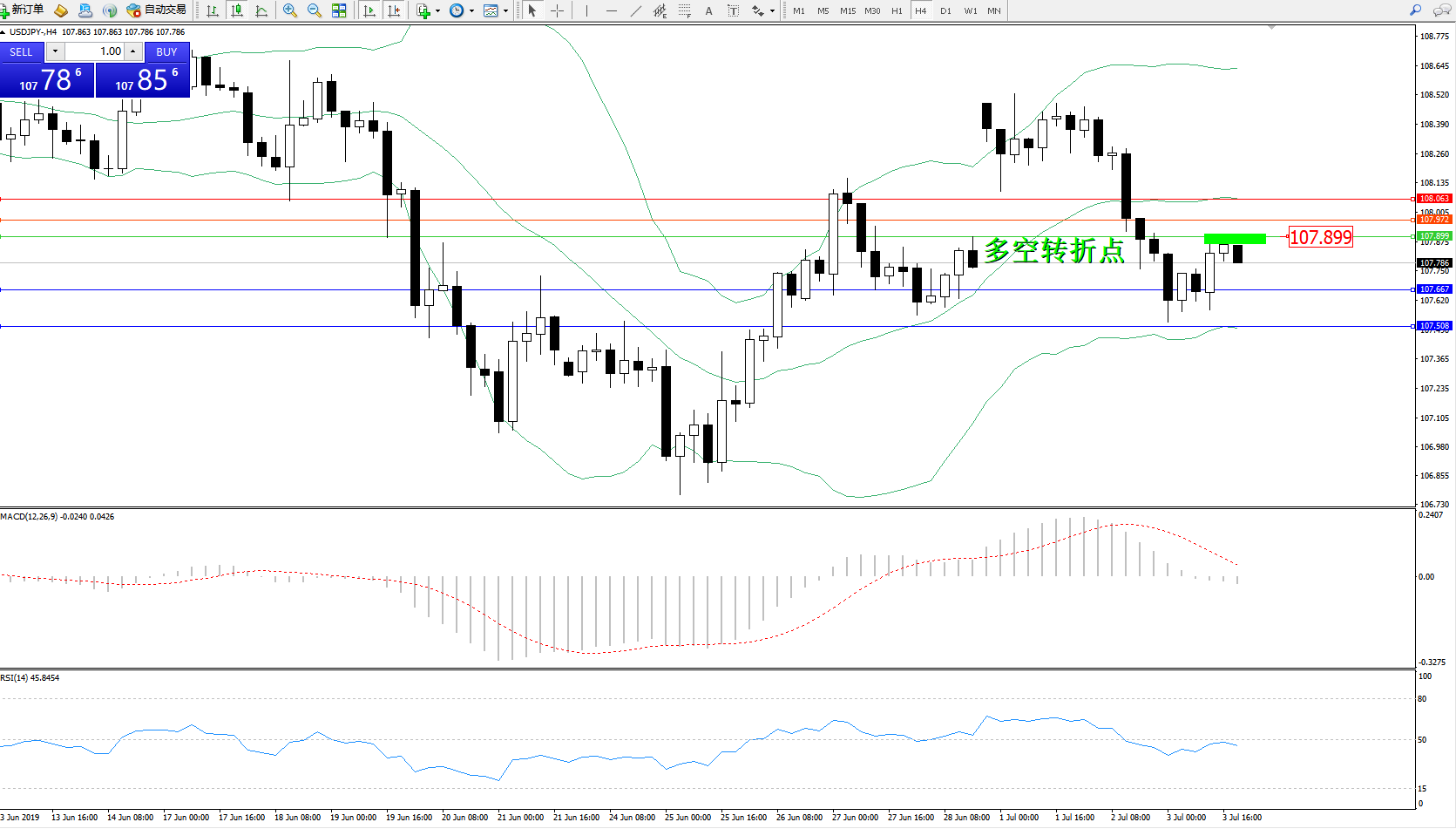 美日创一周新低至,面对全球经济的不确定性,投资者仍倾向于继续持于避险日元现金以应对此后可能出现的“黑天鹅”事件。在避险再度升温的背景下,本周以来的各国PMI数据持续低迷,令投资者仍然押注美联储此后会大力度降息,因此,美元兑日元反弹宣告无果而终。不过,美元兑日元日内却也仍在107.50一线得到支撑,因在本周五美国6月非农就业数据出炉之前,市场仍然不愿在多空双向过度押注。而全球贸易与地缘局势的走向,目前也正在被进一步密切观望。