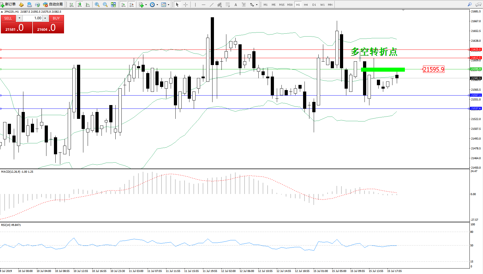 交易策略:21595下方看跌,目标21557、21537