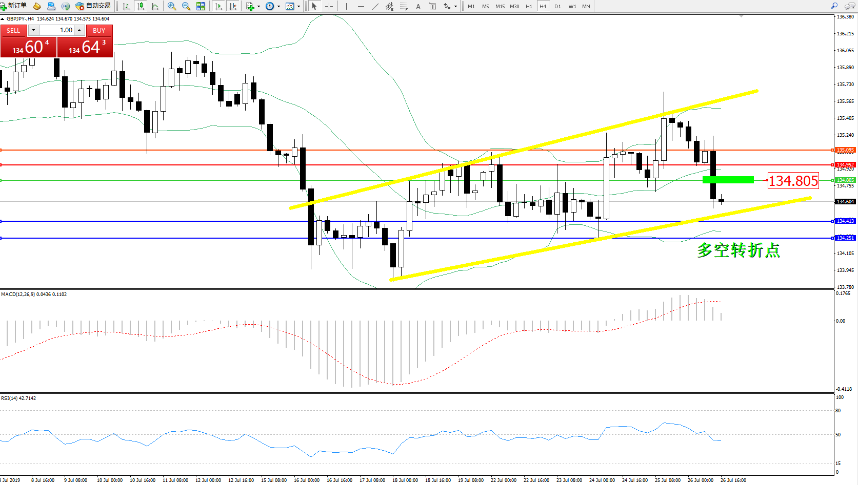 技术点评:宽幅震荡上行趋势持续,回撤至上行通道的下轨附近,有继续回撤态势,且尚未有止步迹象,MACD指标多头区域回撤至0轴线附近,RSI指标地突破50均衡线有维持招抚整理平移;