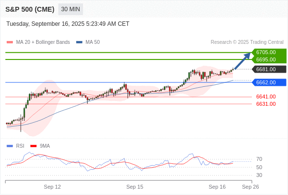 在 6662.00 之上,看涨,目标价位为 6695.00 ,然后为 6705.00 。