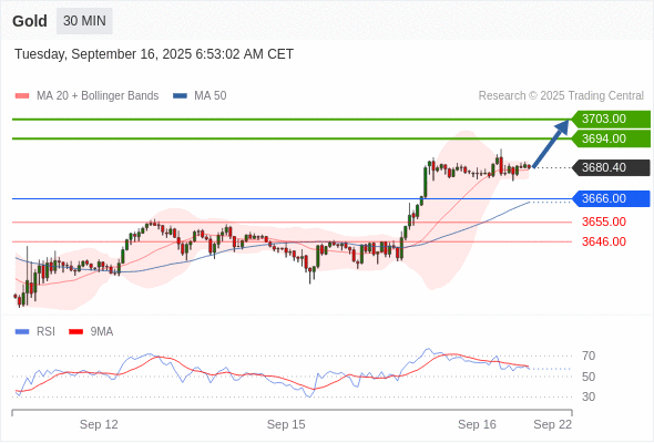 在 3666.00 之上,看涨,目标价位为 3694.00 ,然后为 3703.00 。