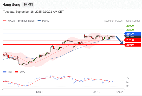 在 26600 之下,看跌,目标价位为 26280 ,然后为 26050 。