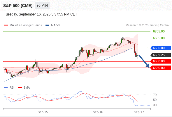 交易策略: 在 6680.00 之下,看跌,目标价位为 6660.00 ,然后为 6650.00 。