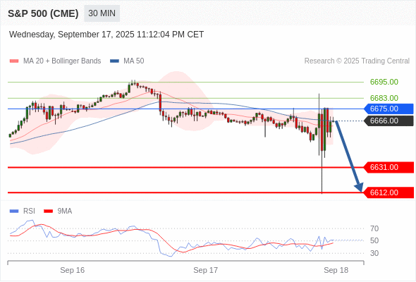 交易策略: 在 6675.00 之下,看跌,目标价位为 6631.00 ,然后为 6612.00 。
