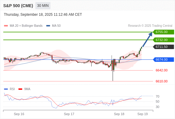 在 6674.00 之上,看涨,目标价位为 6732.00 ,然后为 6755.00 。