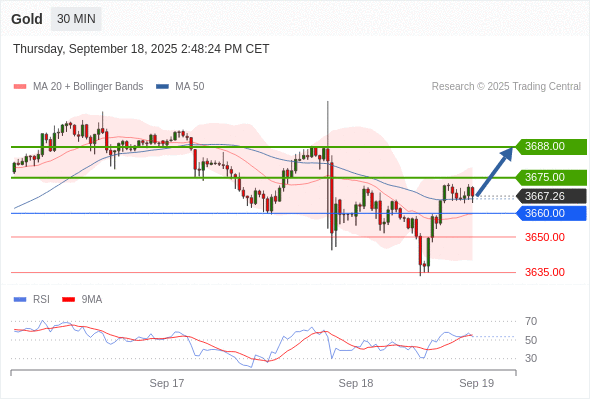 在 3660.00 之上,看涨,目标价位为 3675.00 ,然后为 3688.00 。