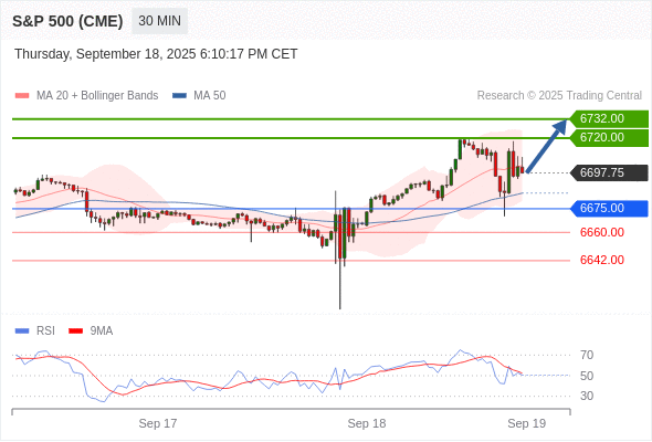 在 6675.00 之上,看涨,目标价位为 6720.00 ,然后为 6732.00 。