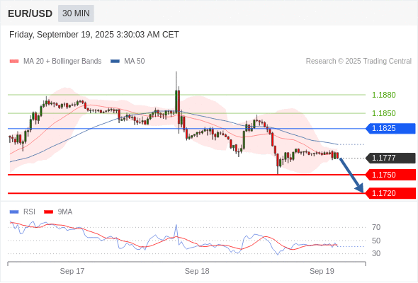 在 1.1825 之下,看跌,目标价位为 1.1750 ,然后为 1.1720 。