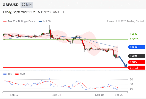 在 1.3565 之下,看跌,目标价位为 1.3455 ,然后为 1.3415 。