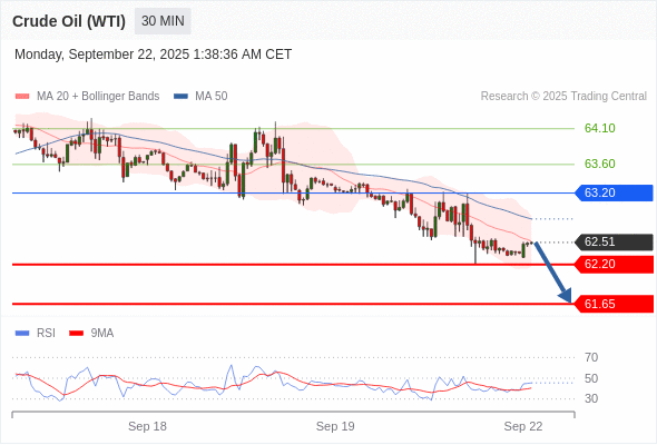美国原油 (WTI) 期货 (X5) 当日内: 短期关键阻力位在63.20。