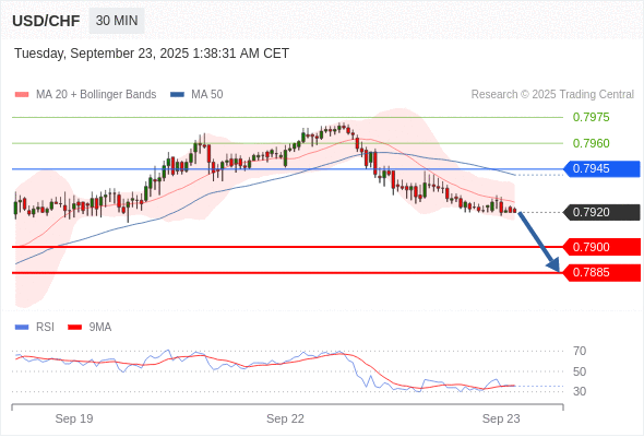 在 0.7945 之下,看跌,目标价位为 0.7900 ,然后为 0.7885 。