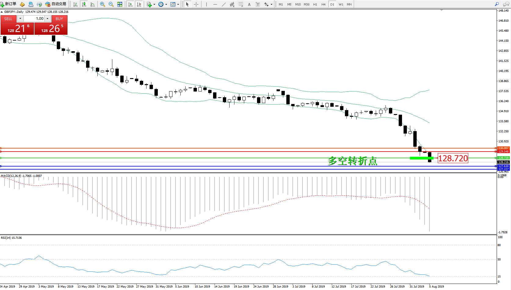 交易策略:128.720下方看跌,目标127.630、127.227