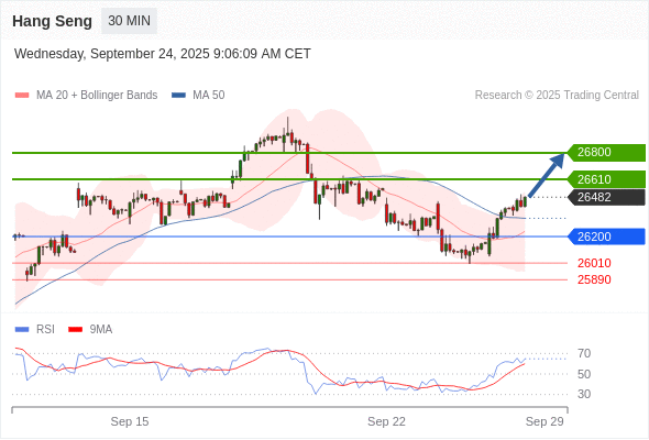 在 26200 之上,看涨,目标价位为 26610 ,然后为 26800 。