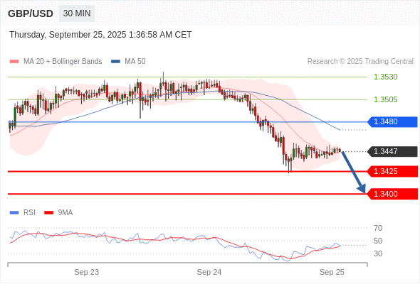在 1.3480 之下,看跌,目标价位为 1.3425 ,然后为 1.3400 。