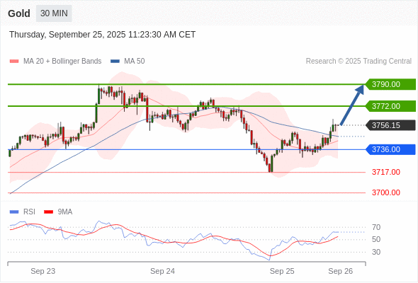 在 3736.00 之上,看涨,目标价位为 3772.00 ,然后为 3790.00 。