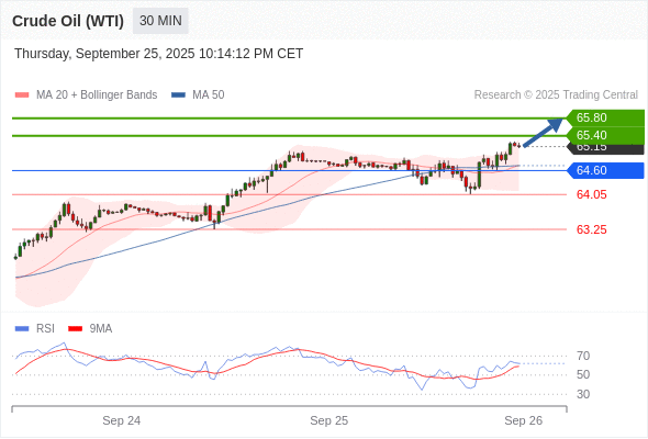 在 64.60 之上,看涨,目标价位为 65.40 ,然后为 65.80 。