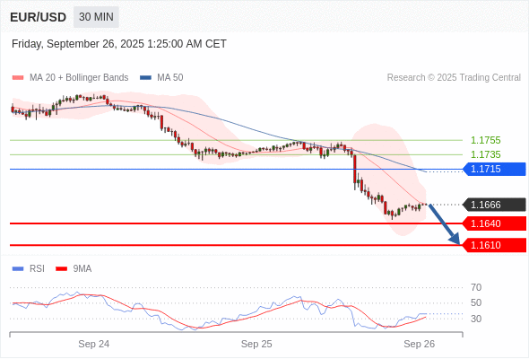 在 1.1715 之下,看跌,目标价位为 1.1640 ,然后为 1.1610 。