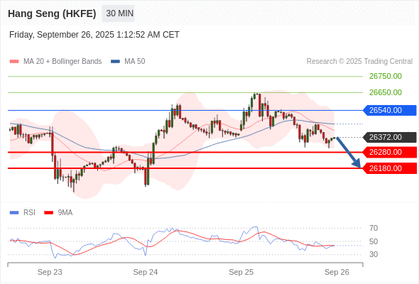在 26540.00 之下,看跌,目标价位为 26280.00 ,然后为 26180.00 。