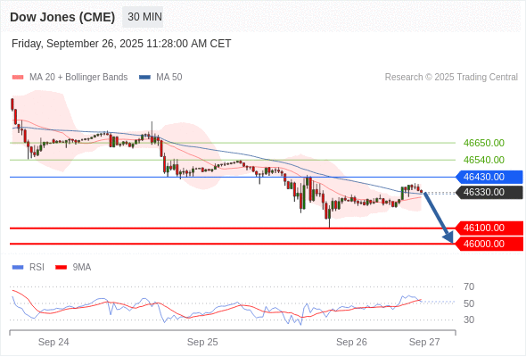 在 46430.00 之下,看跌,目标价位为 46100.00 ,然后为 46000.00 。