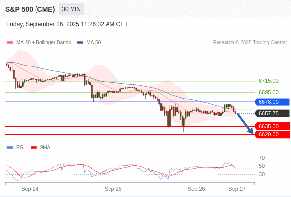 美国标普500指数期货 (Z5) 当日内: 短期关键阻力位在6678.00。