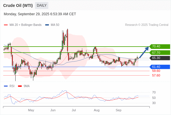 在 61.40 之上,看涨,目标价位为 67.70 ,然后为 70.40 。