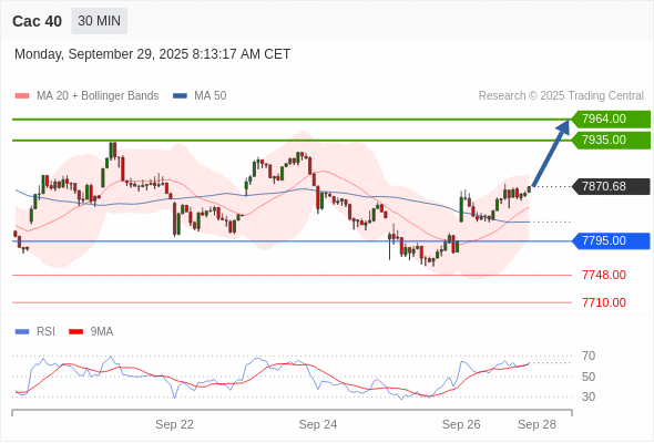 Cac 40 当日内: 在7795.00之上,看涨。