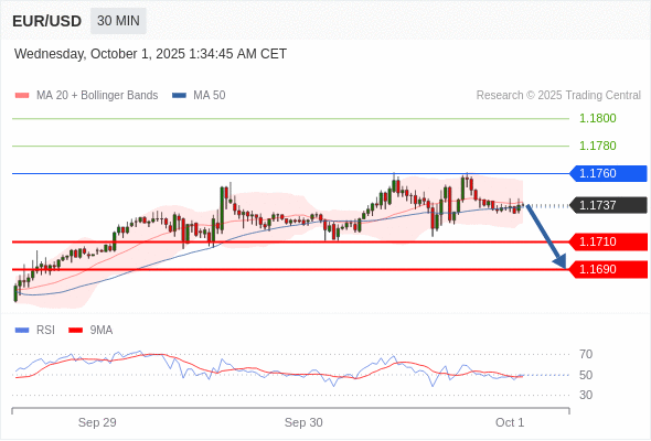 在 1.1760 之下,看跌,目标价位为 1.1710 ,然后为 1.1690 。