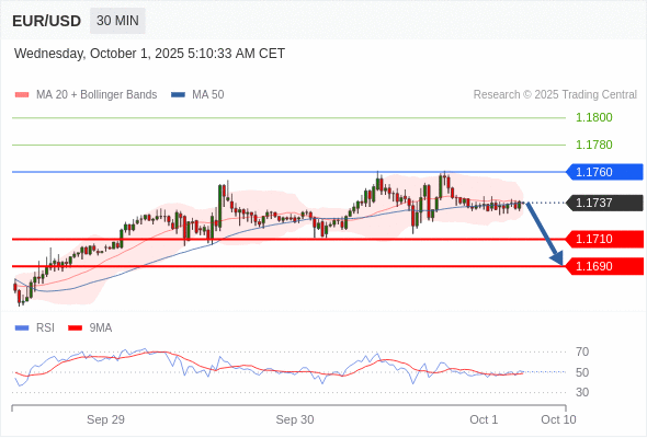 欧元/美元 当日内: 短期关键阻力位在1.1760。