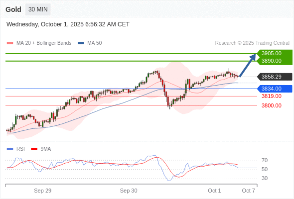 在 3834.00 之上,看涨,目标价位为 3890.00 ,然后为 3905.00 。