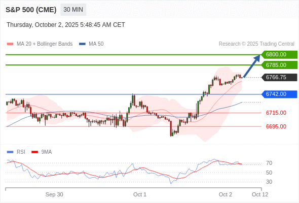 在 6742.00 之上,看涨,目标价位为 6785.00 ,然后为 6800.00 。