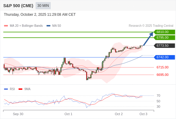 在 6742.00 之上,看涨,目标价位为 6795.00 ,然后为 6810.00 。