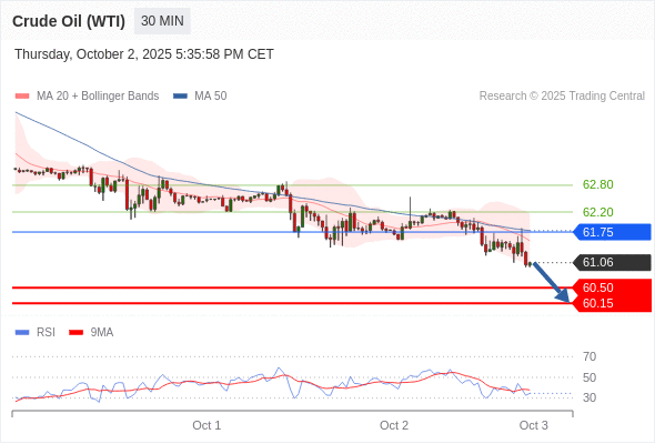 在 61.75 之下,看跌,目标价位为 60.50 ,然后为 60.15 。