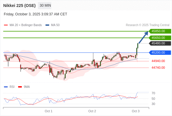 在 45200.00 之上,看涨,目标价位为 45650.00 ,然后为 45850.00 。