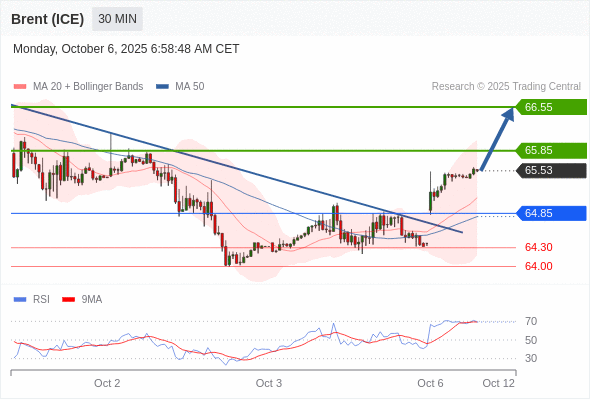 在 64.85 之上,看涨,目标价位为 65.85 ,然后为 66.55 。