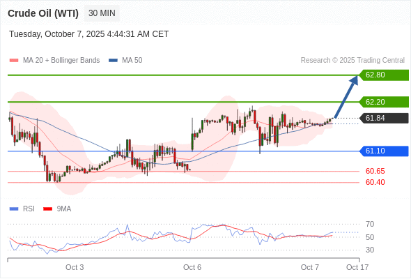 在 61.10 之上,看涨,目标价位为 62.20 ,然后为 62.80 。