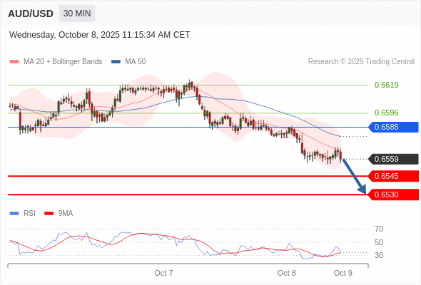 在 0.6585 之下,看跌,目标价位为 0.6545 ,然后为 0.6530 。