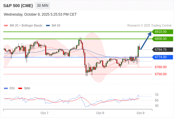 交易策略: 在 6774.00 之上,看涨,目标价位为 6800.00 ,然后为 6810.00 。