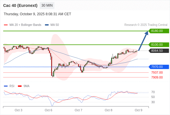 在 7970.00 之上,看涨,目标价位为 8100.00 ,然后为 8180.00 。