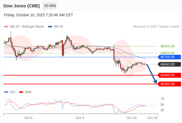 交易策略: 在 46750.00 之下,看跌,目标价位为 46480.00 ,然后为 46350.00 。