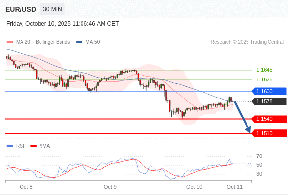 交易策略: 在 1.1600 之下,看跌,目标价位为 1.1540 ,然后为 1.1510 。