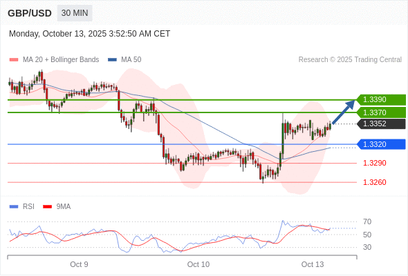 在 1.3320 之上,看涨,目标价位为 1.3370 ,然后为 1.3390 。