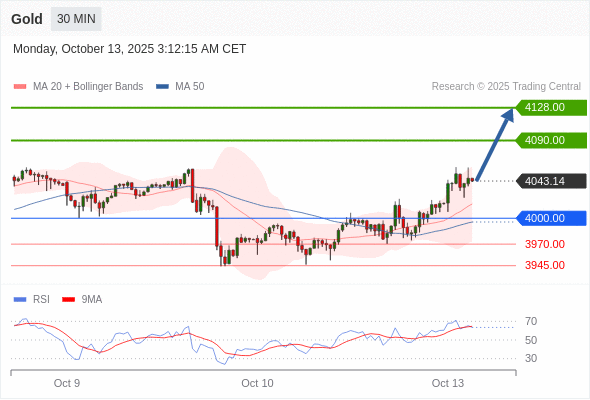 在 4000.00 之上,看涨,目标价位为 4090.00 ,然后为 4128.00 。