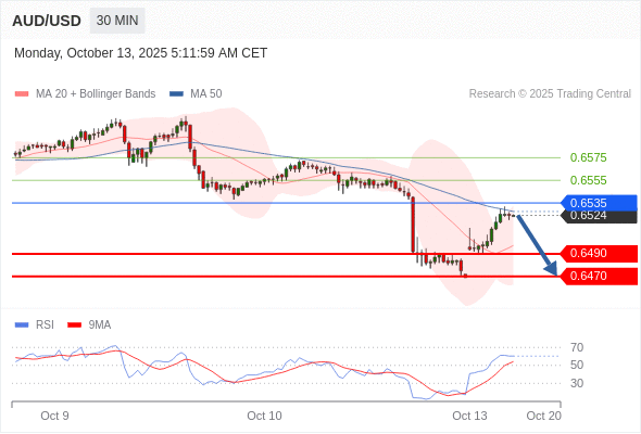 交易策略: 在 0.6535 之下,看跌,目标价位为 0.6490 ,然后为 0.6470 。