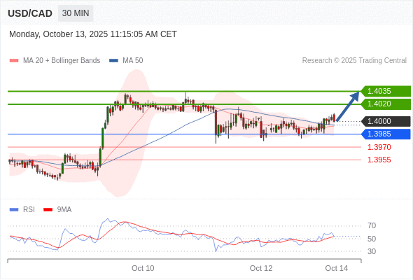 在 1.3985 之上,看涨,目标价位为 1.4020 ,然后为 1.4035 。