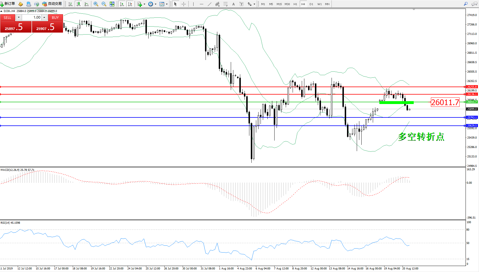 道琼斯指数8月20日(周二)收盘下跌173.40点,跌幅0.66%,报25962.44点。投资者对美国经济前景再次感到担忧,欧洲政局的动荡也给政府债券收益率带来压力。三大股指尾盘跳水,均收于日低点。一直担心投资者过于依赖美联储降息,对经济前景过于自满,现在我们看到市场正在意识到这些风险。目前存在太多不确定性,短期内不太可能看涨。国债收益率曲线的倒挂引发美国投资者不安,在美联储会议记录公布前,以及杰克森霍尔会议的消息出来之前,人们都在寻求逢低买进。
